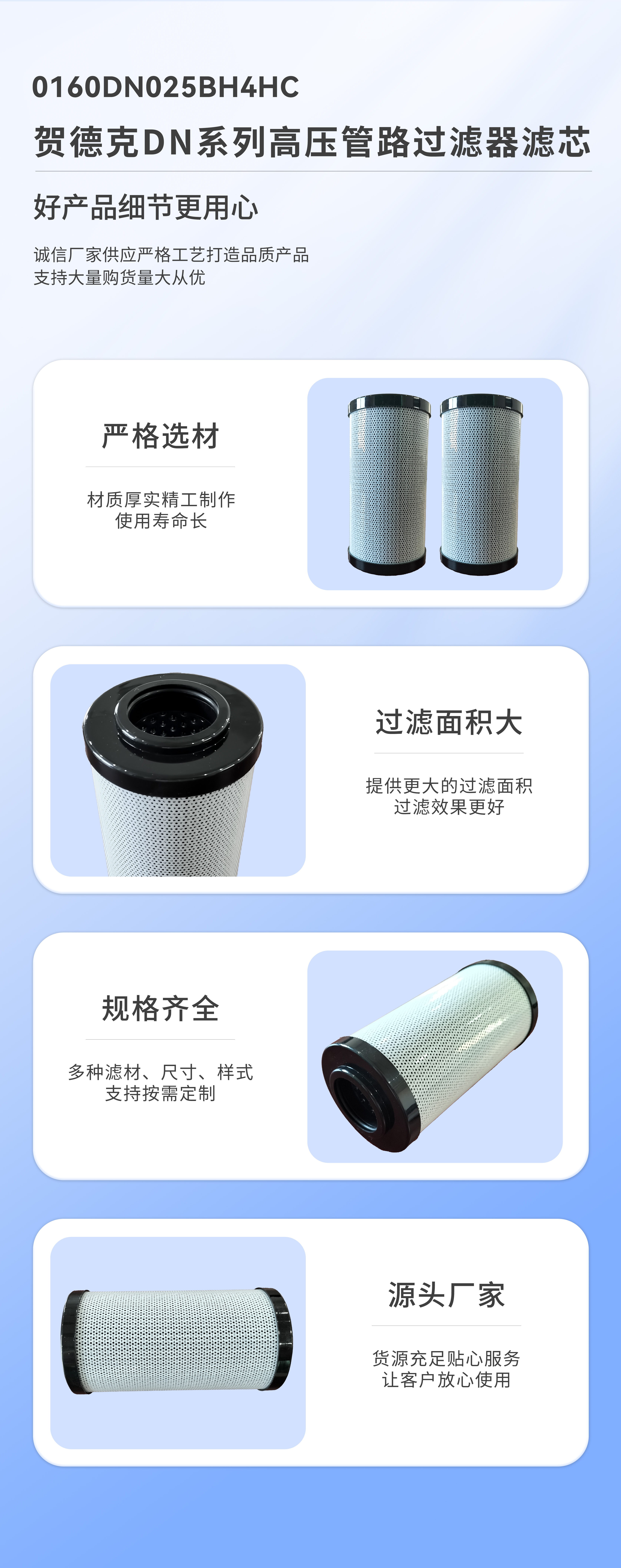 賀德克DN系列高壓管路過濾器濾芯在液壓系統中,用于濾除工作介質中的固體顆粒及膠狀物質,控制工作介質的污染度。
